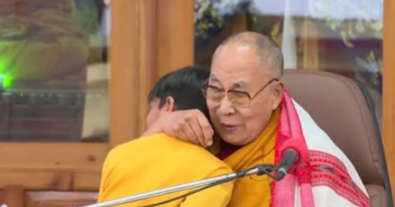 Después de que el Dalai Lama (Tenzin Gyatso, de 87 años de edad) mostró la lengua al niño, le ofreció un discurso con una sonrisa: “Ahora, deberías fijarte en los seres humanos que son buenos, quienes crean la paz y la felicidad. No deberías seguir a aquellos seres humanos que siempre están matando a otras personas. No deberías ver a esta gente”, acción que culminó en un nuevo abrazo.