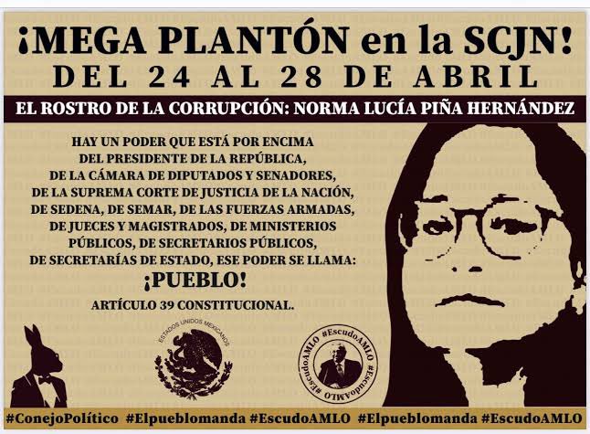 Pasen a firmar, hay que remover a este Poder Judicial corrompido, han convertido la justicia en un negocio… la justicia en México la tocan y la venden, puros moches en los Ministerios Públicos ya queremos que se vayan… que vayan a hacerle compañía a Genaro García Luna”