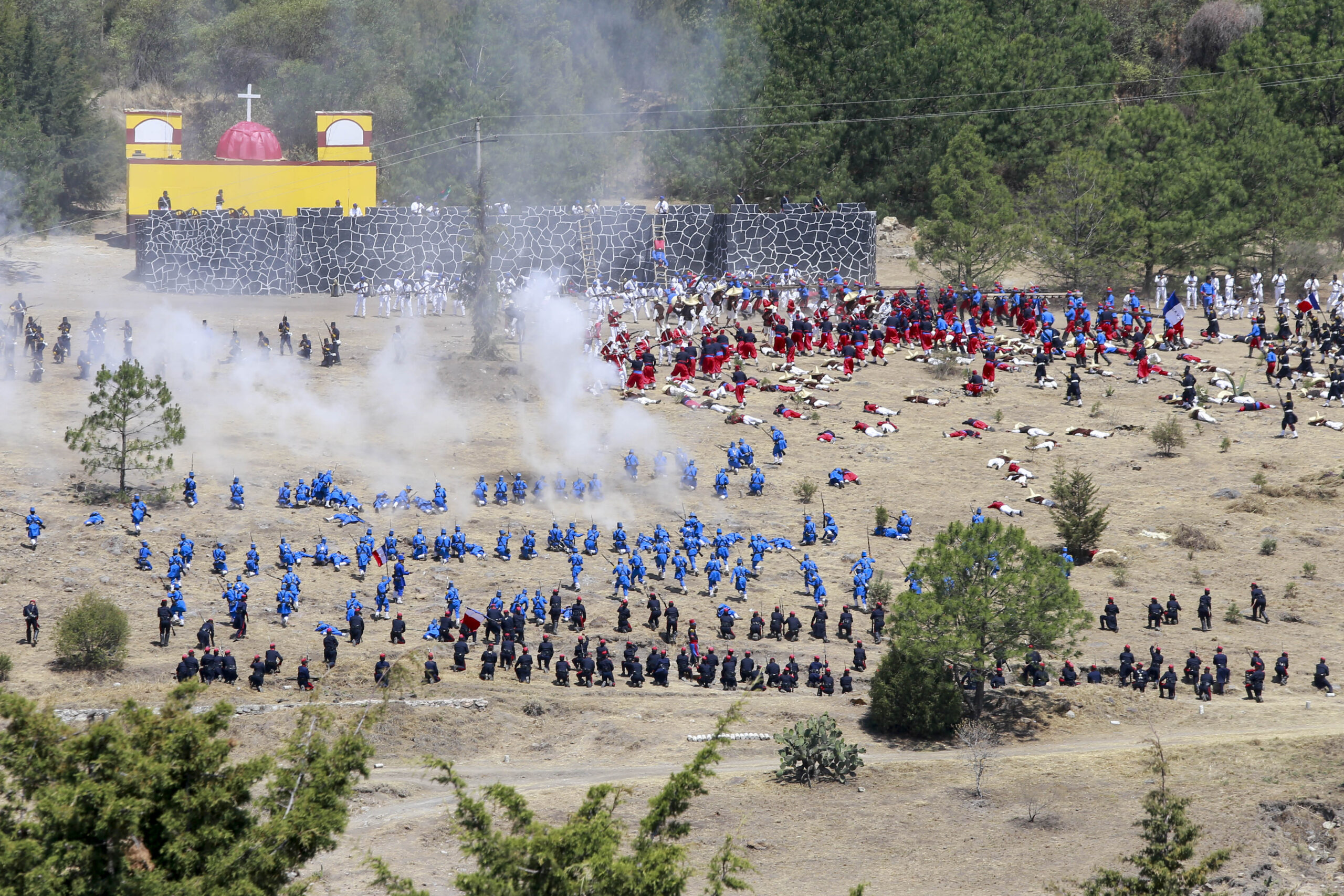 En la décima edición de la representación de la gesta heroica organizada por la Secretaría de la Defensa Nacional (Sedena), participaron dos mil 300 elementos y 73 caballos para representar al Ejército francés y el mexicano.