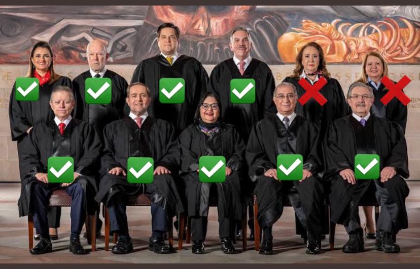 El proyecto de invalidez contó con el apoyo de los ministros: Alberto Pérez Dayán, Margarita Ríos Farjat, Juan Luis González Alcántara, Luis María Aguilar, Arturo Zaldívar, Alfredo Gutiérrez Ortiz, Jorge Mario Pardo, Javier Laynez Potisek y Norma Piña.
