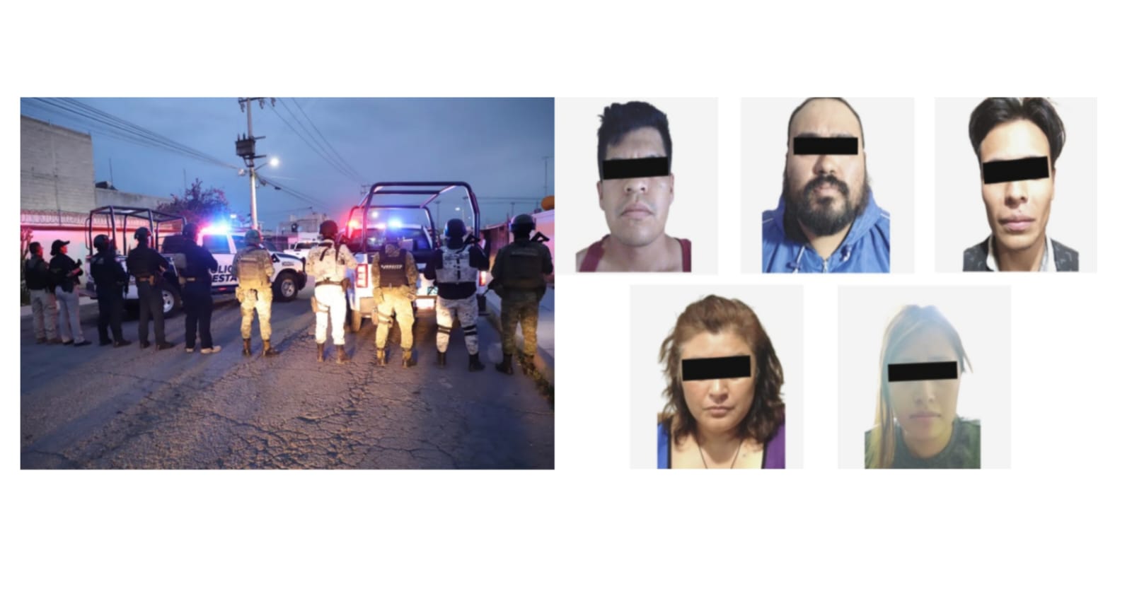 Los detenidos hombres son identificados con las iniciales L.T.S.R., J.G.S.R y G.P.M y las mujeres A.M.P. y M.P.L, las cinco personas fueron puestas a disposición de las autoridades correspondientes para determinar su situación por su posible relación de delitos contra la salud.