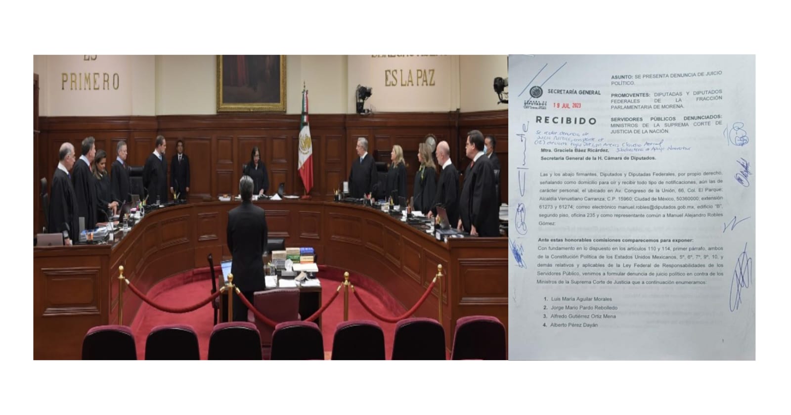 Los legisladores de la 4T aseguran que los ministros obstaculizan el avance del el pueblo mexicano, pues se la pasan rechazando todas y cada una de las reforma impulsadas por AMLO y aun cuando en un principio se había señalado que solo iban en contra de cuatro de los 11 ministros, se informo que el asunto será parejo por que se tomara en cuanta a los 11 colegiados, pues consideran una “violación al artículo 127 constitucional”, por negarse a ganar menos que el presidente Andrés Manuel, que dicho sea de paso fue quien implantase una política de “austeridad republicana”.