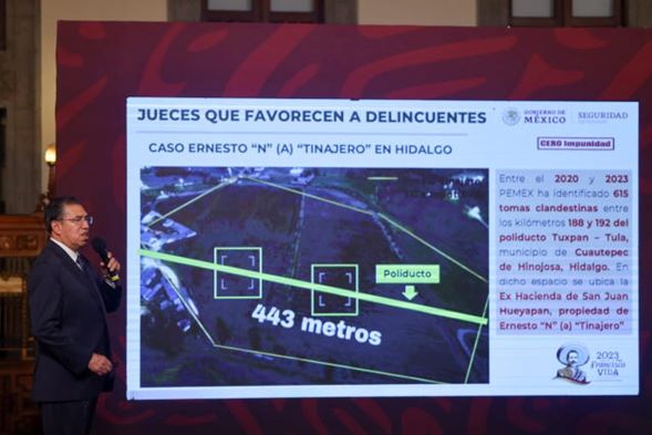 Como parte del informe de seguridad de los funcionarios del gabinete de seguridad durante una mañanera presidencial, Luis Rodríguez Bucio, subsecretario de Seguridad Pública, dio a conocer otros tres casos de jueces que favorecen a presuntos delincuentes. En esta ocasión, el funcionario exhibió a juzgadores que decidieron no vincular a proceso a personas relacionadas con el robo de combustible, conocido como huachicol.