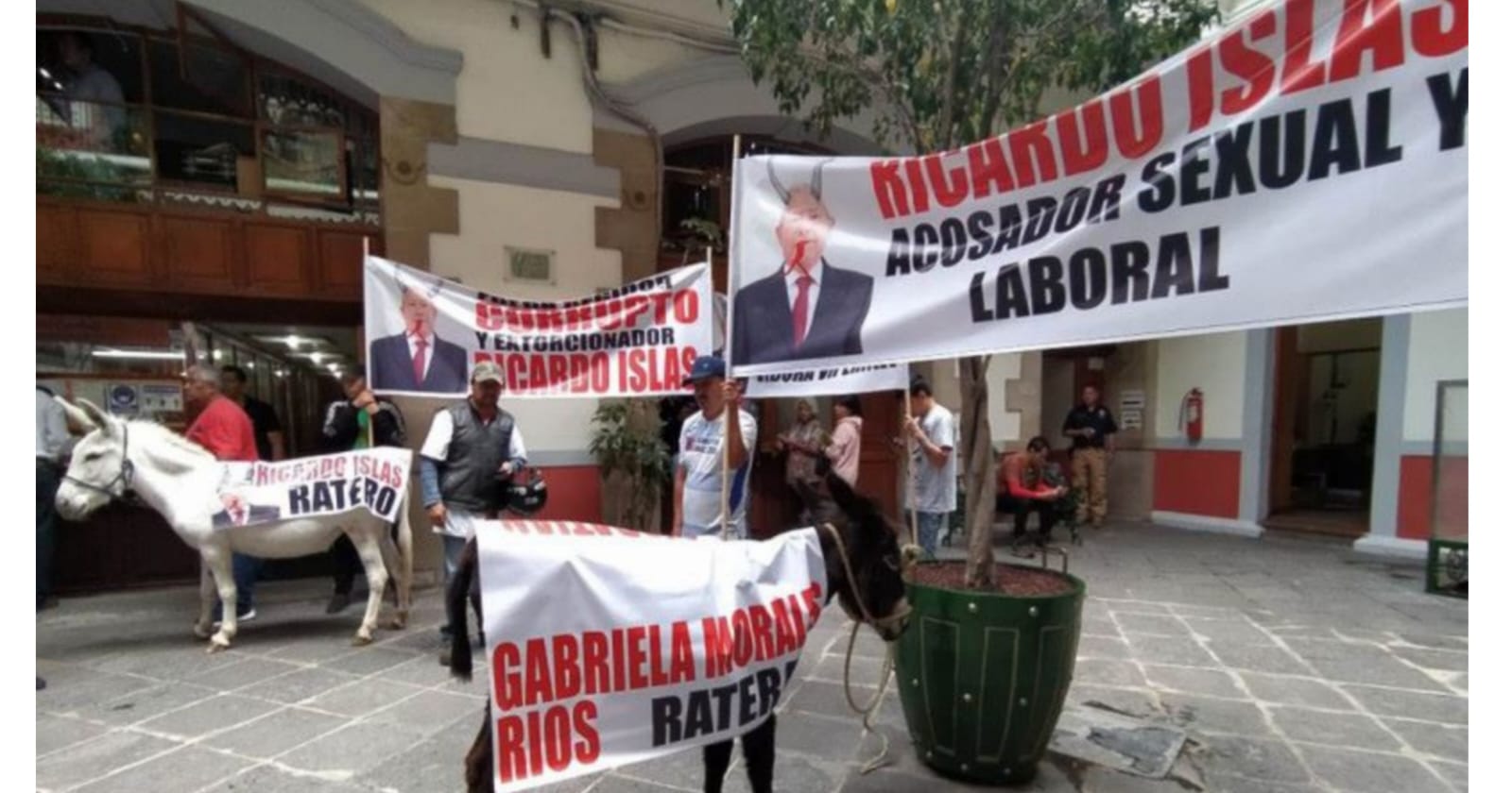 Tablajeros del rastro municipal de Pachuca, llevaron a cabo una protesta en contra el Ricardo Islas Salinas, regidor morenista, fue con burro y mantas que hicieran evidente la inconformidad, arribando a la sede de la presidencia municipal de Pachuca.