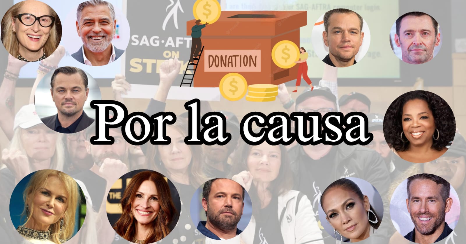 Tras cumplirse tres meses de la huelga de los sindicatos de actores y guionistas de Hollywood, Estrellas de Hollywood como Mery Streep, Nicole Kidman, Julia Roberts, Oprah Winfrey, George Clooney, Matt Damon, Ryan Reynolds, Jennifer López, Ben Affleck, Hugh Jackman y Leonardo DiCaprio entre otros, donaron, cada uno, un millón de dólares para apoyar a los actores sin trabajo por la huelga que empezaron en mayo, al Programa de Asistencia Financiera de Emergencia sindical.