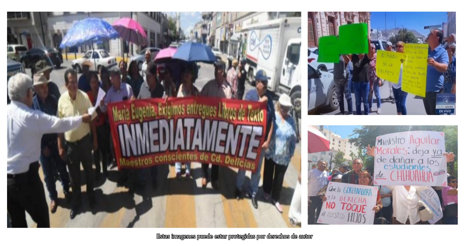 Alrededor de unas 200 personas en Chihuahua, Chih., llevaron a cabo una protesta debido a la decisión de la gobernadora panista María Eugenia Campos Galván, esto por impedir el reparto de los libros de texto gratuitos, pues este grupo de personas afirman que están a favor de la distribución de los nuevos libros de texto gratuitos, al mismo tiempo que acusan a la gobernadora de ser una gobernadora de puerta cerrada, una gobernadora que no escucha al pueblo y por si fuera poco una gobernadora que tiene al palacio de gobierno con vayas.