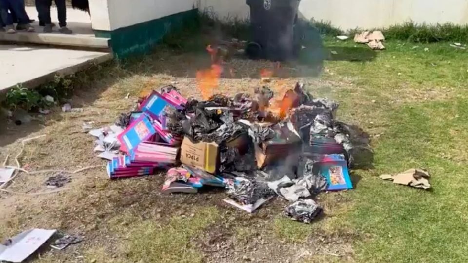 Sin que abrieran las cajas de los libros les rociaron combustible para posteriormente prenderles fuego, un indígena tzotzil dijo, que los libros de ciencias naturales, geografía, matemáticas y español, tienen ideología para inculcar a los kerem (niños) el «comunismo», «tipo zapatismo», como lo hicieron en Cuba «Fidel Castro y el ‘Che’ Guevara».