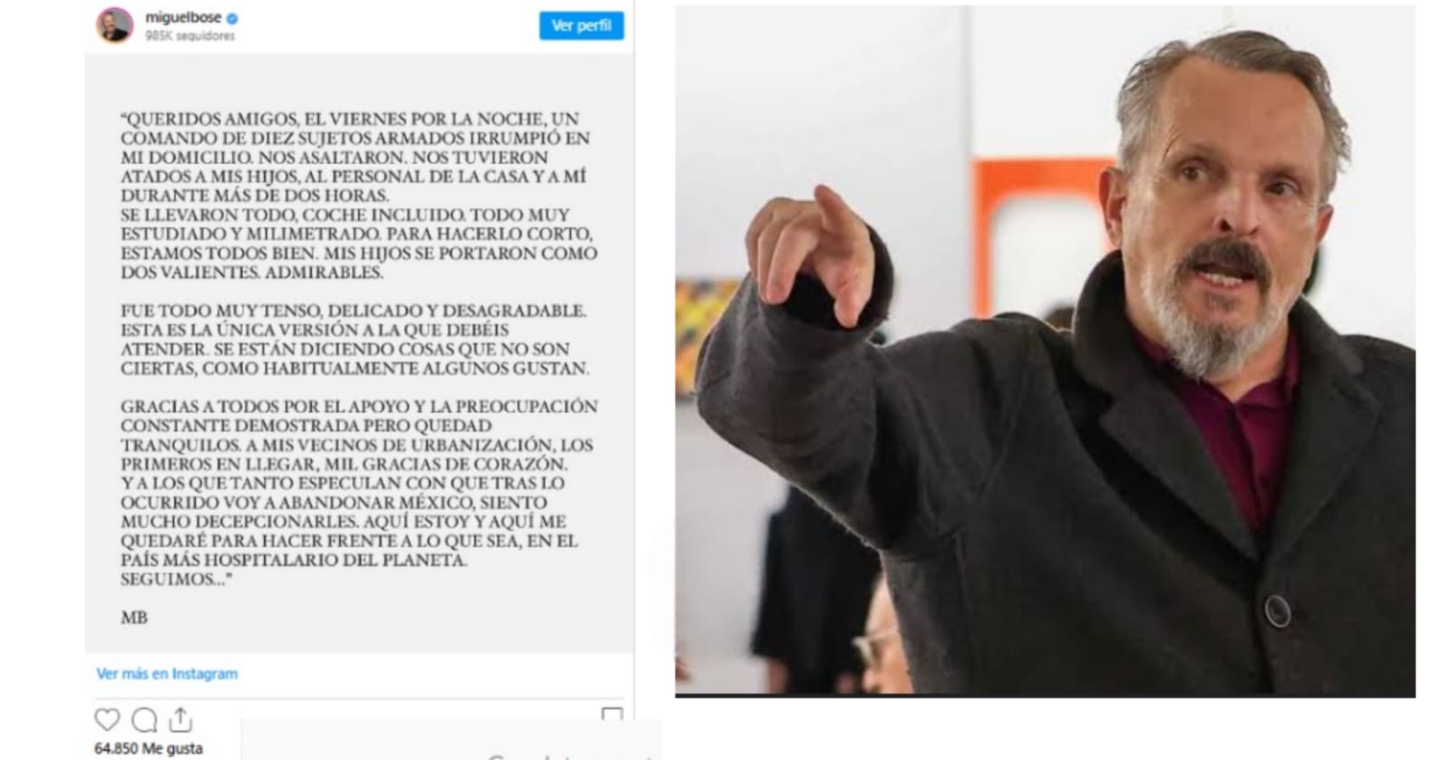 El cantante a través de sus redes sociales hizo del conocimiento del publico de manera muy concreta los hechos que le acontecieron, pidiendo que no se crea de todo lo que esta saliendo en algunos medios ya que algunas cosas que se dicen no son ciertas, así mismo reconoció la valentía de sus hijos y comenta que lo sucedido fue tenso, delicado y muy desagradable, pero que no abandonará México.