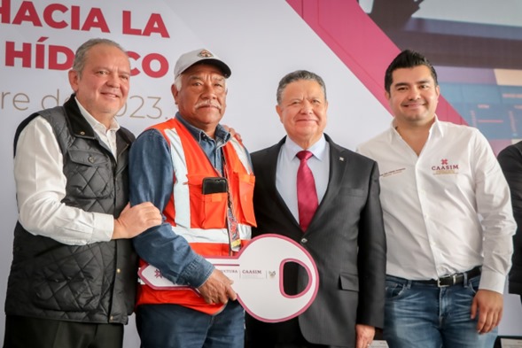 Aunado a ello, realizó la entrega simbólica de llaves para 6 pipas, una unidad de atención, 2 grúas de 80 toneladas y un camión tipo vactor para abastecer del vital líquido a miles de familias que habitan la zona conurbada de la capital hidalguense.