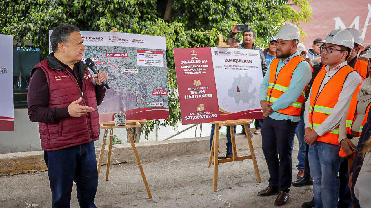 En su visita a Ixmiquilpan, Menchaca Salazar supervisó la rehabilitación de la carretera Paso por Ixmiquilpan, en la cual se invertirán más de 27 millones de pesos para garantizar la movilidad de más de 156 mil personas.