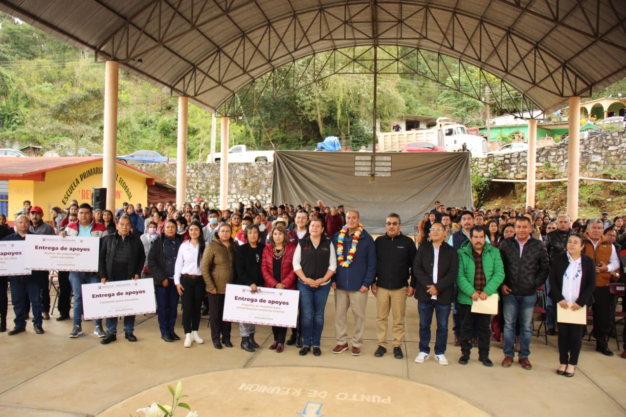 En gira de trabajo por el municipio de Chapulhuacán, el secretario de Educación Pública de Hidalgo, Natividad Castrejón Valdez, visitó la Escuela Primaria Revolución, ubicada en la localidad de San Rafael, en donde entregó infraestructura y materiales de apoyo para la rehabilitación de espacios en escuelas de educación básica y media superior de los municipios de Jacala de Ledezma, Pisaflores y Chapulhuacán.