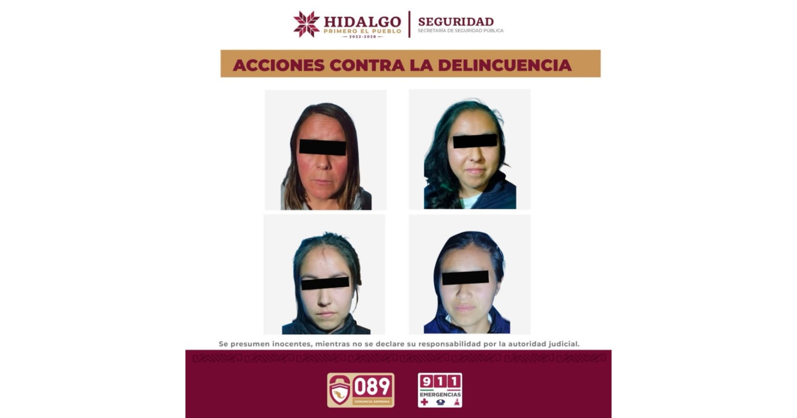 Derivado del combate permanente contra la delincuencia, la Secretaría de Seguridad Pública de Hidalgo (SSPH) logró el desmantelamiento de tres posibles centros relacionados con el narcomenudeo y actividades de tráfico de hidrocarburos, asegurando a cuatro personas del sexo femenino junto con armas, dinero en efectivo, droga, bidones con combustible y vehículos.