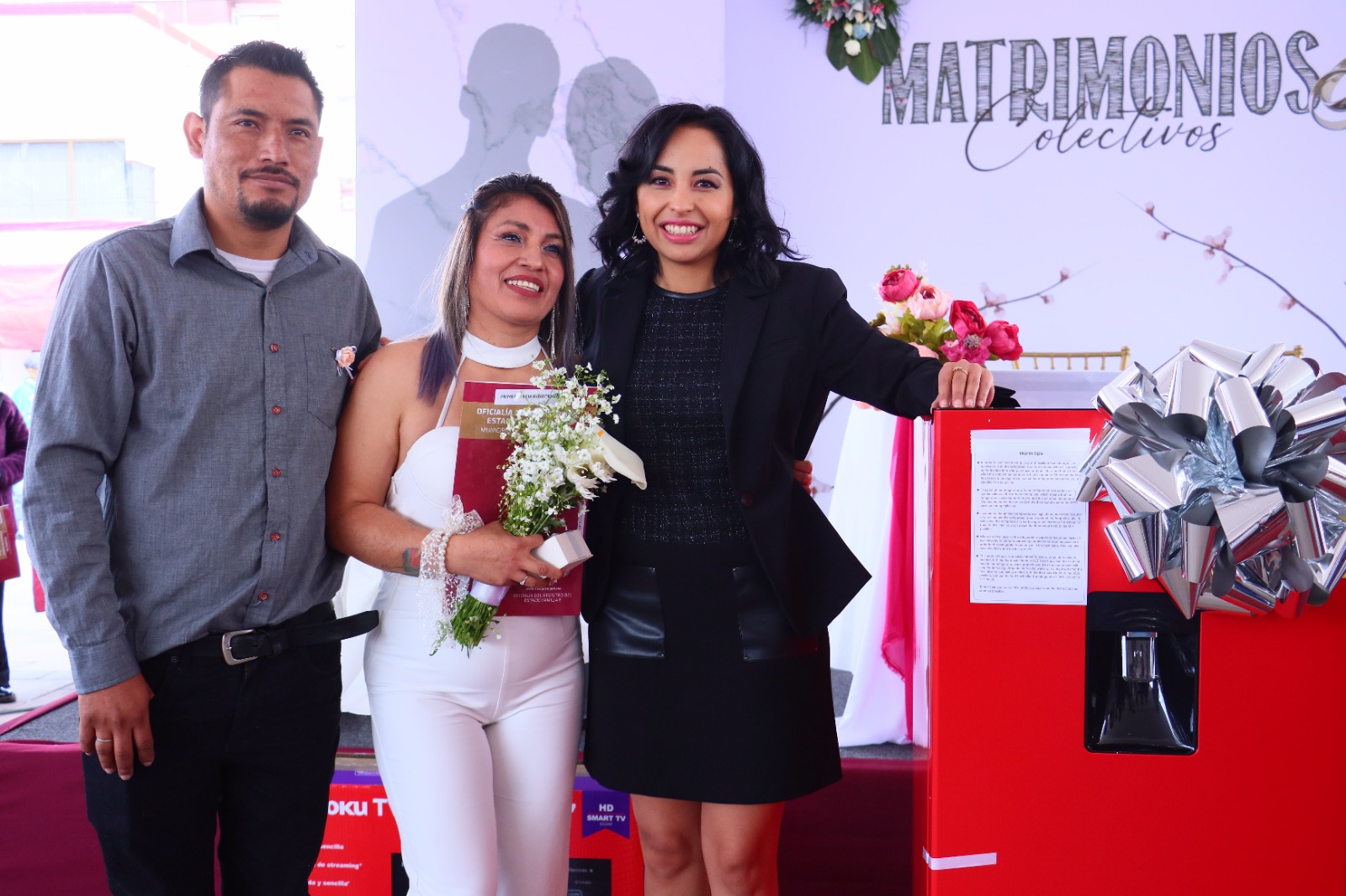 Posteriormente, a las parejas se les otorgaron obsequios, como refrigeradores, pantallas y parrillas.