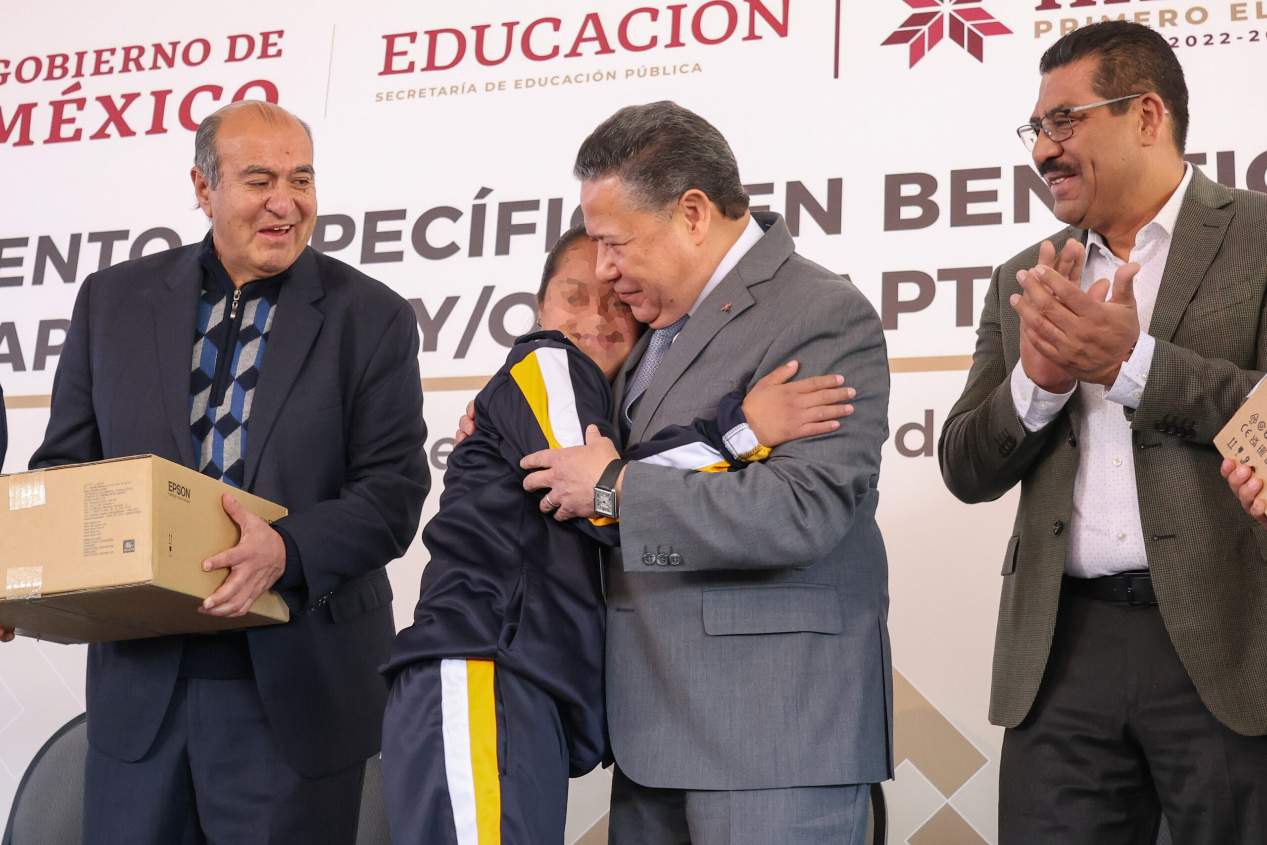 “¡Qué siempre la mente, la mano y el corazón trabajen en beneficio de las poblaciones históricamente vulnerables, porque primero es la educación, primero es el pueblo!”, declaró a nombre de sus compañeras y compañeros, Alejandro Yael Delgadillo Gómez, alumno del Centro de Atención Múltiple Número 1, quien recibió de parte del gobernador Julio Menchaca Salazar equipamiento específico para estudiantes con discapacidad y/o aptitudes sobresalientes.