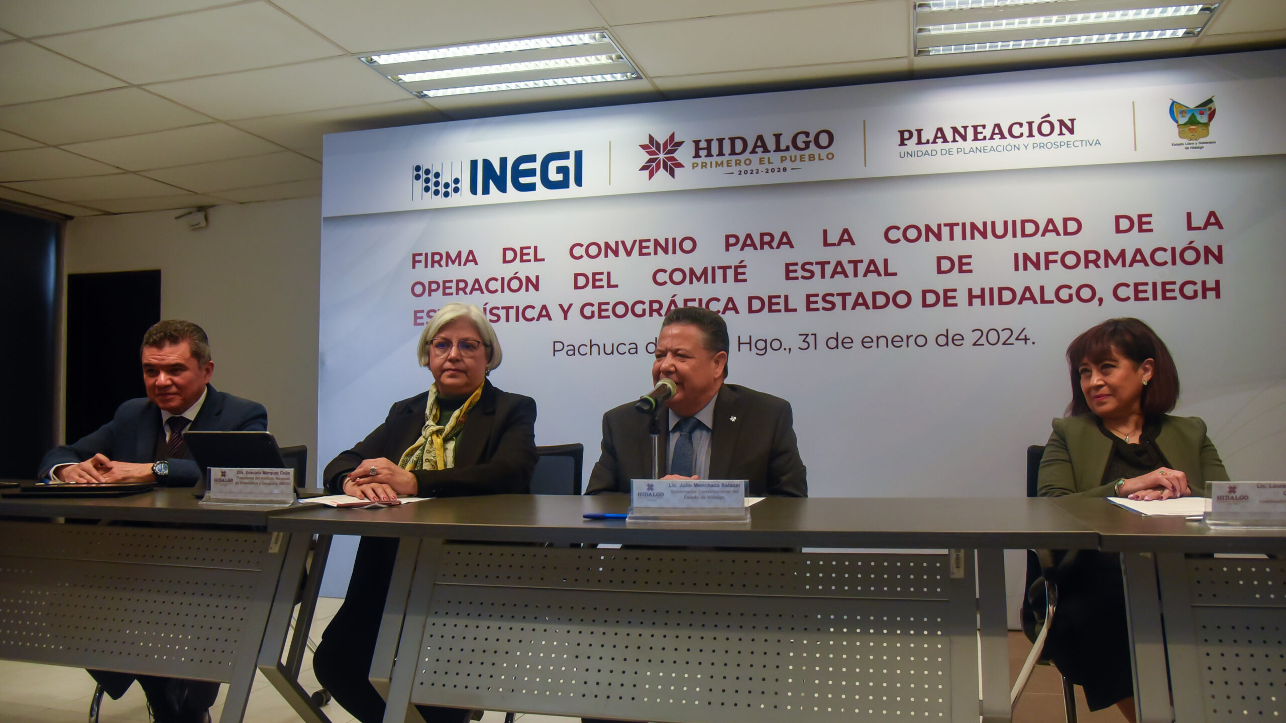 En un esfuerzo de coordinación entre el gobierno de Hidalgo y el Instituto Nacional de Estadística y Geografía (INEGI), el mandatario estatal, Julio Menchaca Salazar, encabezó la firma del Convenio para la Continuidad de la Operación del Comité Estatal de Información Estadística y Geográfica del Estado de Hidalgo.