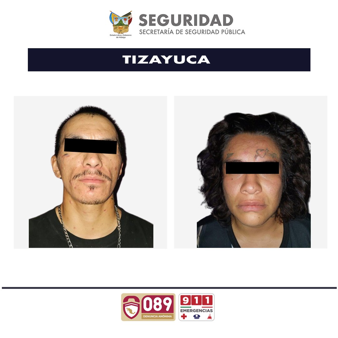 A través de un cateo desarrollado en coordinación con la Procuraduría General de Justicia del Estado de Hidalgo (PGJEH), fue intervenido un domicilio del fraccionamiento Los Corrales, en el municipio de Tizayuca, donde fueron aprehendidos un hombre y una mujer identificados como C. C. P. y J. R. U. J., respectivamente.