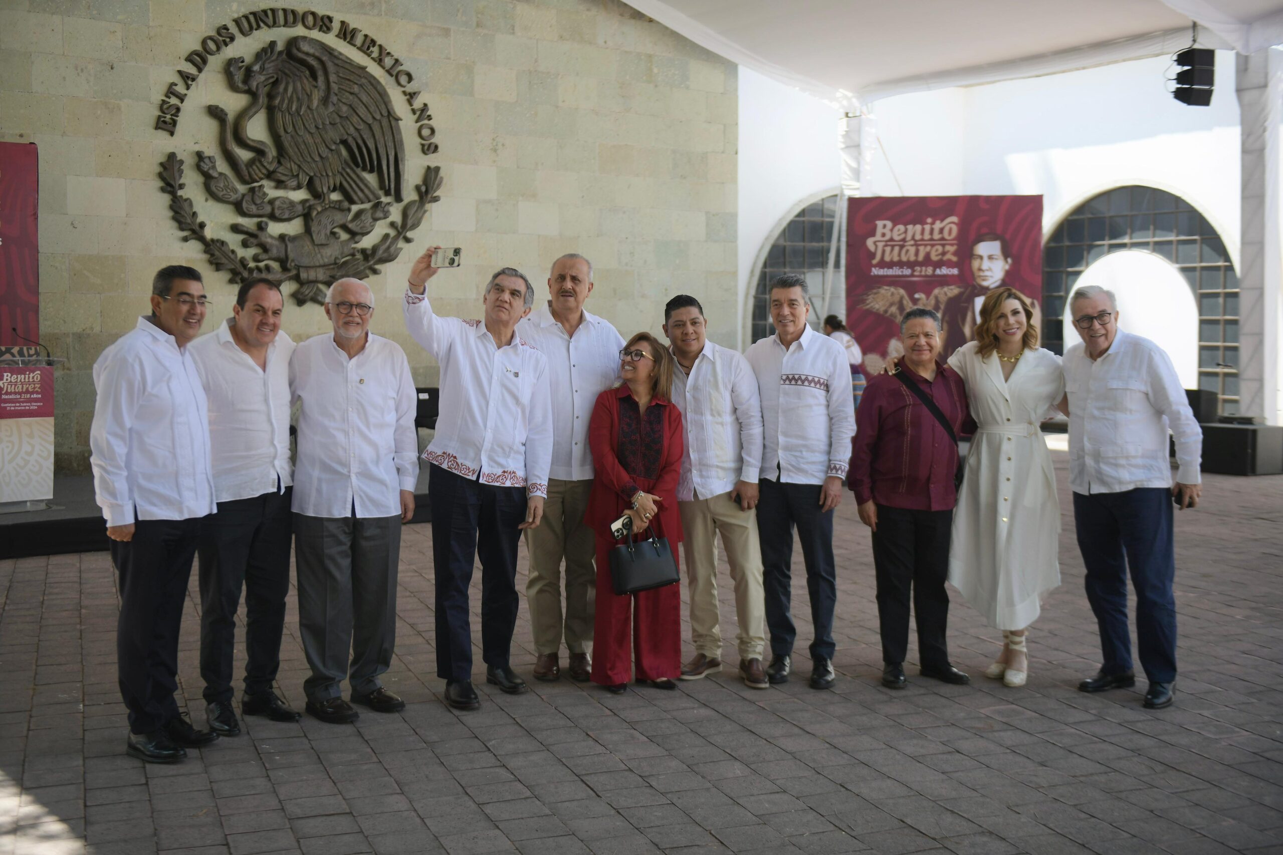 El mandatario hidalguense acompañó al presidente de la República al 218 Aniversario del Natalicio de Benito Juárez, en Oaxaca, donde también estuvieron gobernadoras y gobernadores de diferentes estados del país. En dicha entidad, también se realizó una reunión de supervisión para continuar con el análisis del sistema de salud IMSS-Bienestar.
