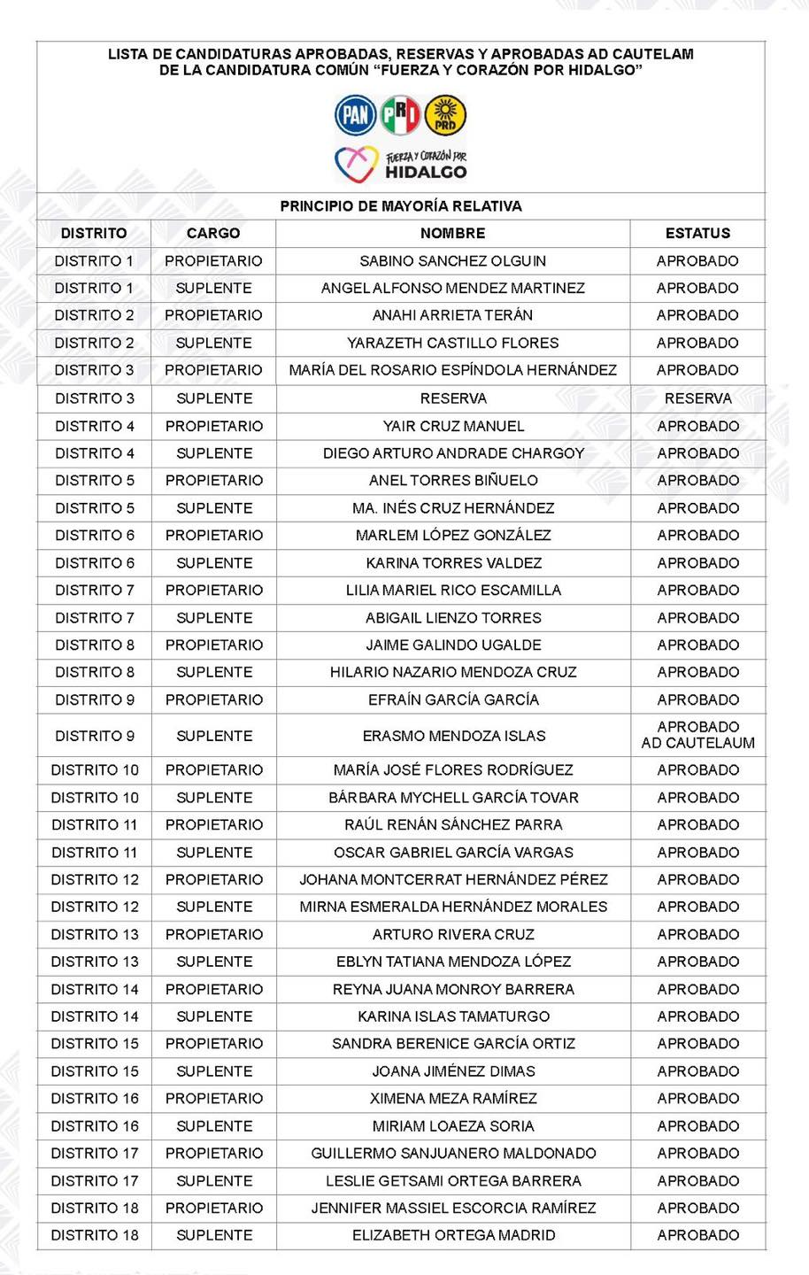 El Instituto Estatal Electoral de Hidalgo ya ha aprobado las solicitudes de registro de fórmulas de candidaturas por el principio de Mayoría Relativa, esto para contender por los cargos de diputaciones locales.