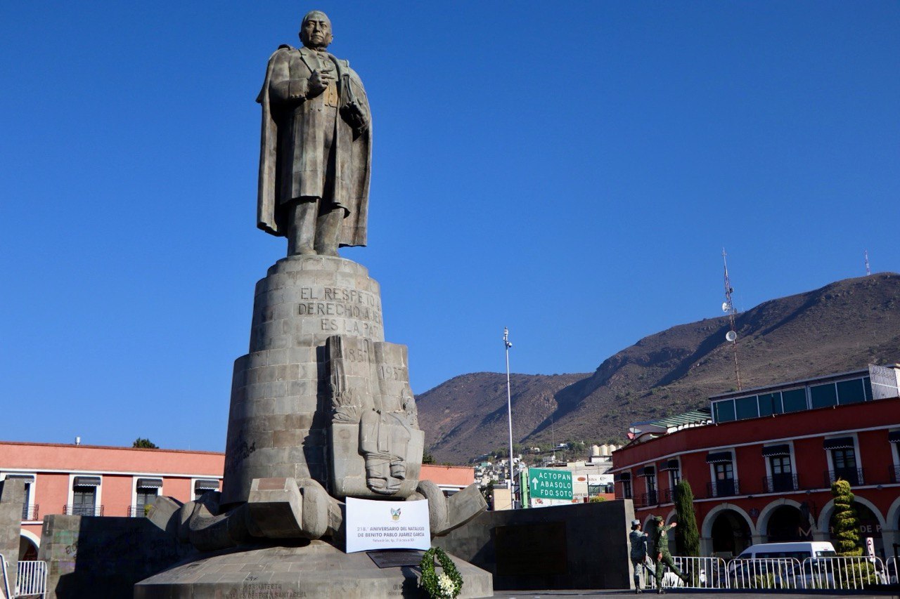 Con motivo del 218 aniversario del natalicio de Benito Pablo Juárez García se realizó, en Pachuca de Soto, el acto cívico para recordar el legado de uno de los líderes más emblemáticos de México. En el monumento ubicado en Plaza Juárez, se rindieron honores a los símbolos patrios, y se colocó la respectiva ofrenda floral para homenajear a quien, además de ser un distinguido estadista, fue defensor de la democracia y la justicia social.