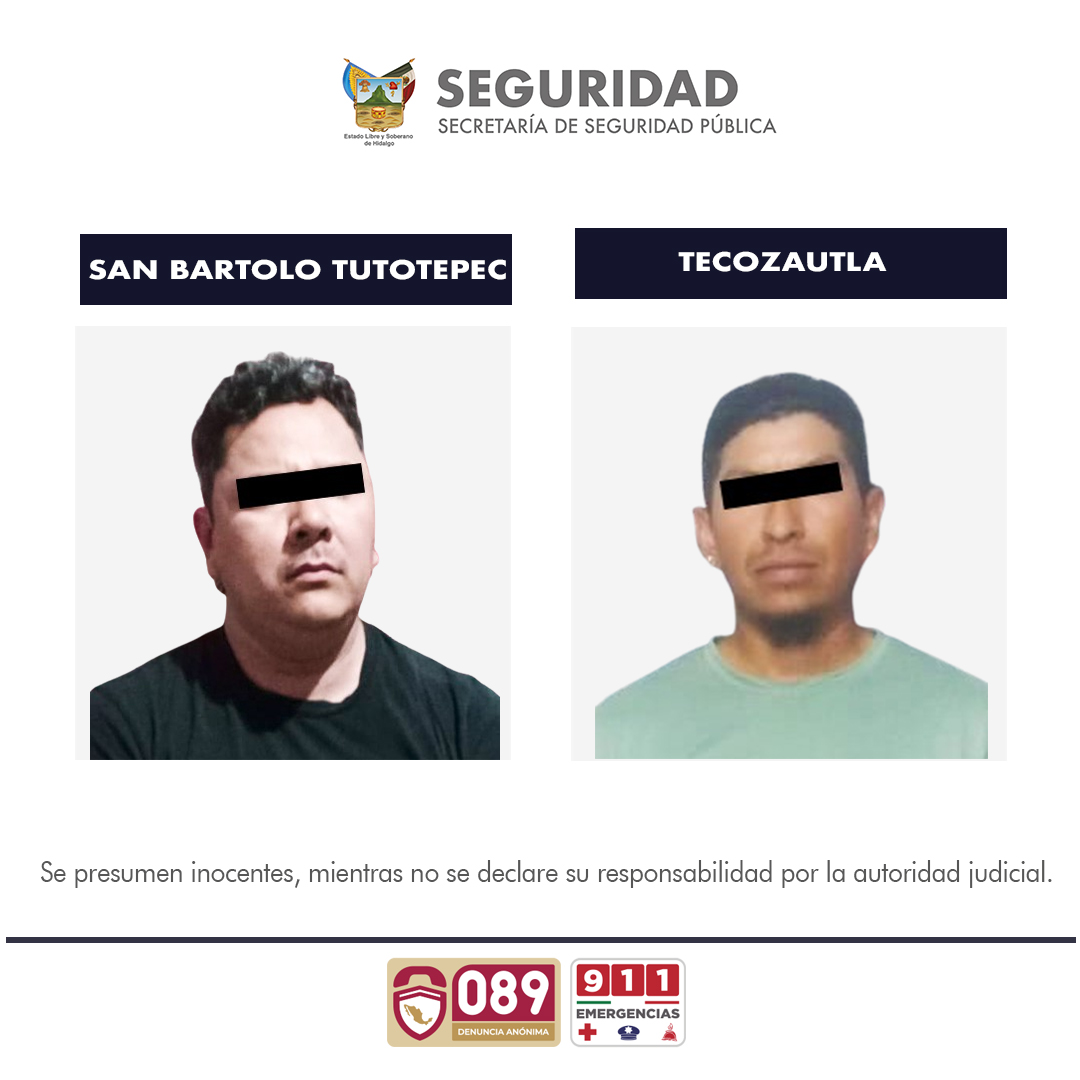 Elementos adscritos a la Secretaría de Seguridad Pública de Hidalgo realizaron la detención de dos personas por la portación ilegal de un arma en el municipio de Progreso de Obregón.
