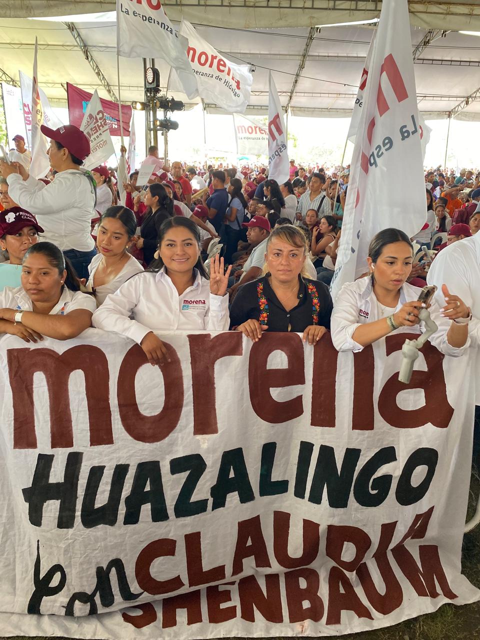 La candidata a la alcaldía de Huazalingo acudió acompañada de simpatizantes y seguidores a escuchar el mensaje de la próxima presidenta de México.