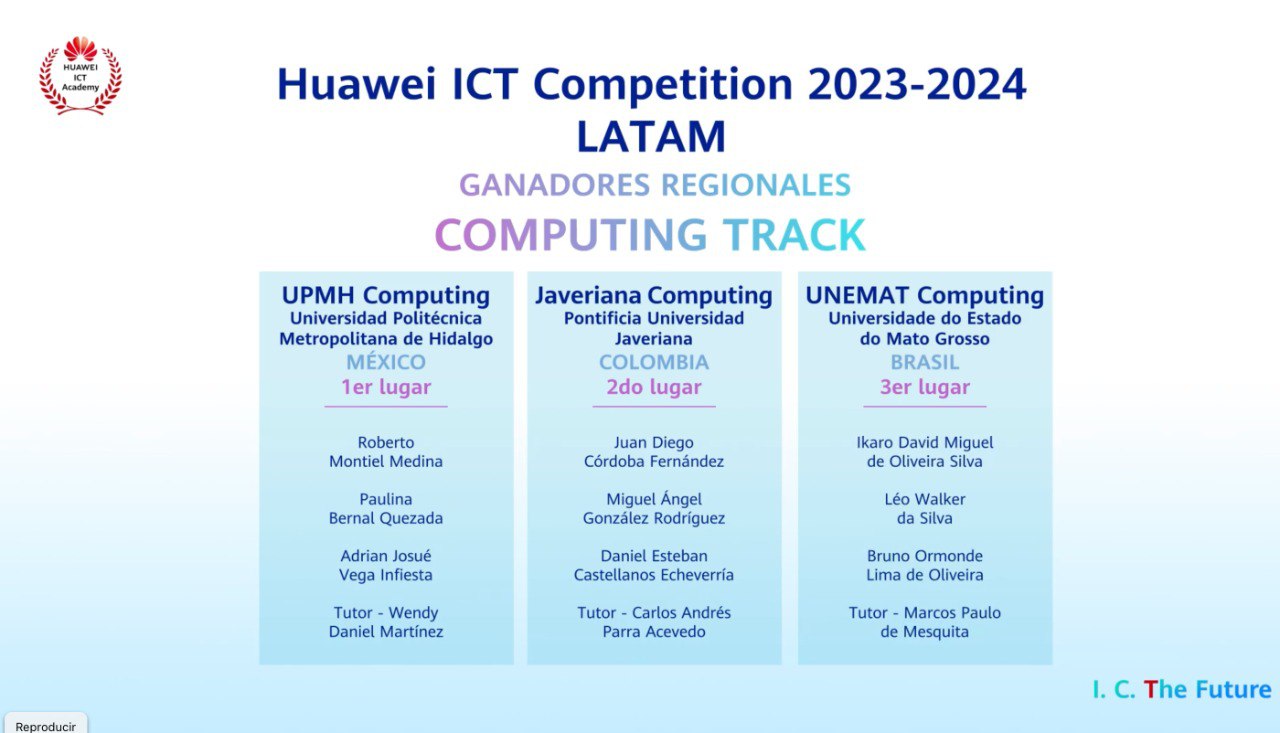 Estudiantes de la Ingeniería en Tecnologías de la Información de la Universidad Politécnica Metropolitana de Hidalgo (UPMH) obtuvieron el primer lugar a nivel América Latina en la prestigiosa competencia HUAWEI ICT COMPETITION 2023-2024.