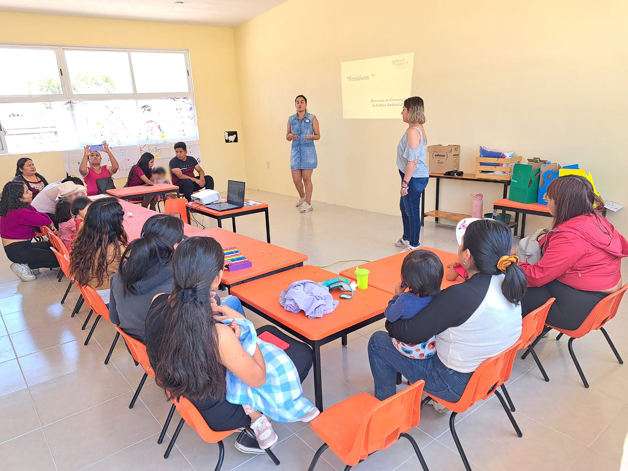 Personal de la Dirección de Fomento a la Cultura Ambiental de la Secretaría de Medio Ambiente y Recursos Naturales de Hidalgo (Semarnath) impartió una plática y taller sobre separación de residuos sólidos urbanos a niñas y niños de educación inicial, en La Españita, Ixmiquilpan.