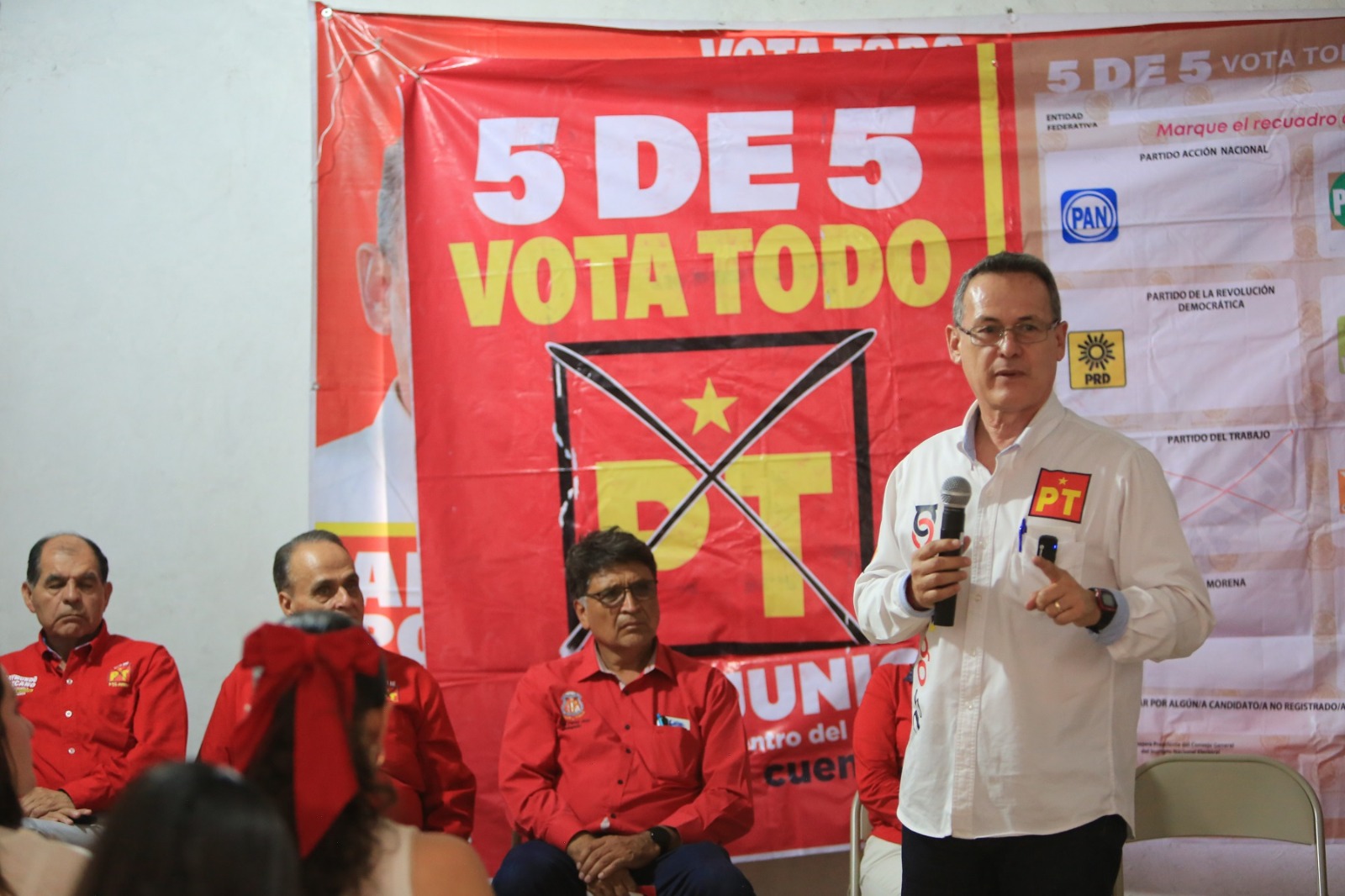 En su llamado al voto, Pontigo ha destacado a los cinco candidatos del PT para las diferentes representaciones: Claudia Sheinbaum para la Presidencia de la República; Damián Sosa y Dani Chávez para el Senado; Luz Rubio para la Diputación Federal en el Distrito 6; él mismo para la Diputación Local; y Humberto Veras Godoy para la Presidencia Municipal de Pachuca.