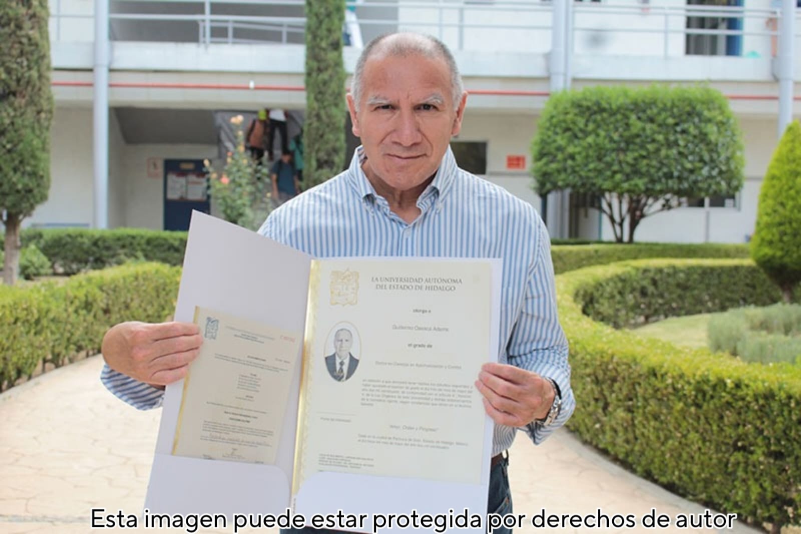 Guillermo Oaxaca Adams, quien cuenta con 61 años de edad, estudiante del Doctorado en Ciencias en Automatización y Control, del Instituto de Ciencias Básicas e Ingeniería (ICBI), de la Universidad Autónoma del Estado de Hidalgo (UAEH), obtuvo mención honorífica por desarrollar la tesis “Estudio sobre familias politópicas con términos trascendentes: fragilidad, desempeño y robustez”, esta investigación consiste en la explicación matemática del funcionamiento del sistema de control tecnológico, a fin de realizar mejoras operativas al mismo.