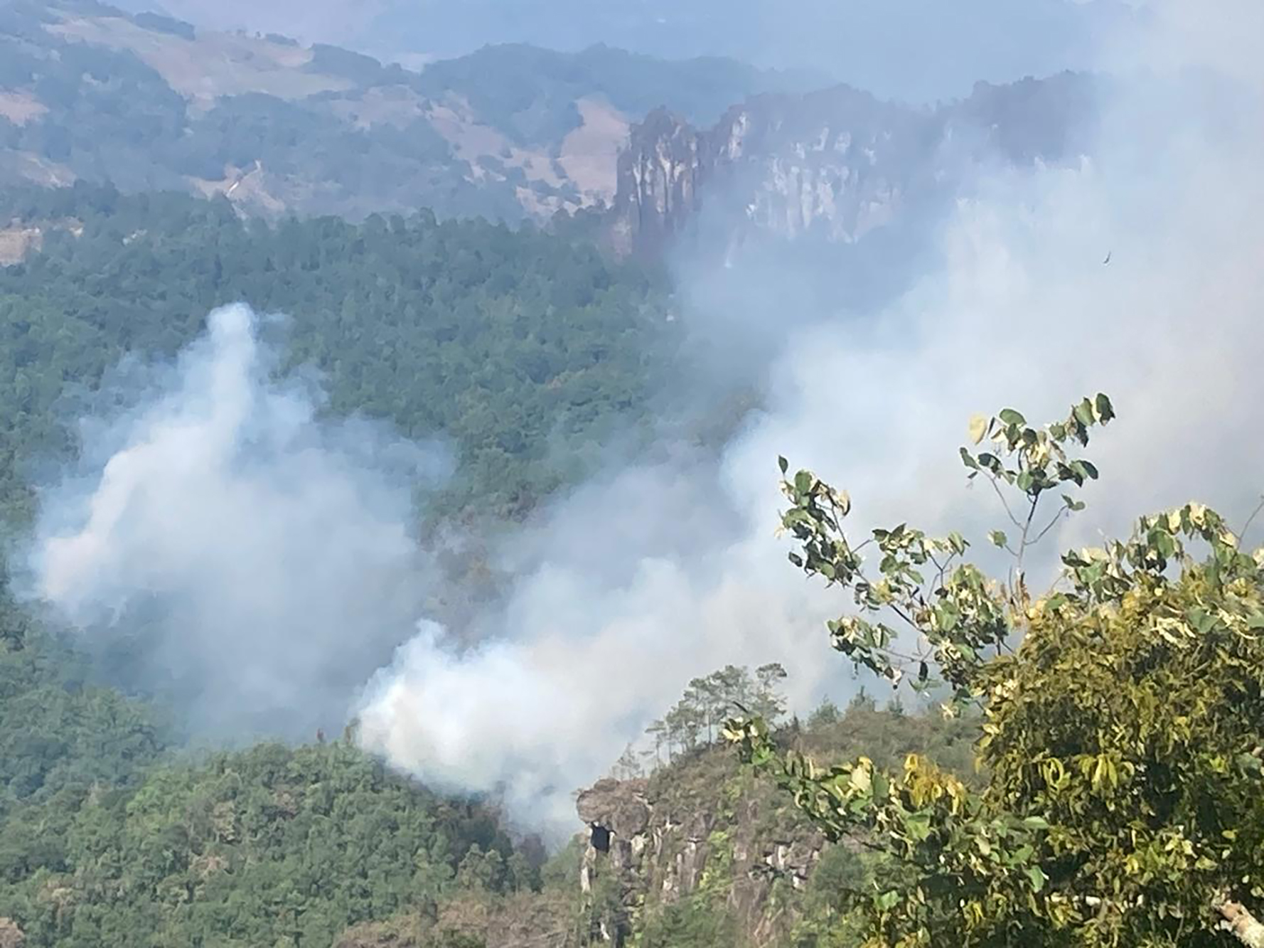 En el lugar conocido como El Potrero, El Cirio y Santa Mónica, en Tenango de Doria, se reactivaron varios incendios forestales que están devastando árboles maduros, matorral y hierba seca.
