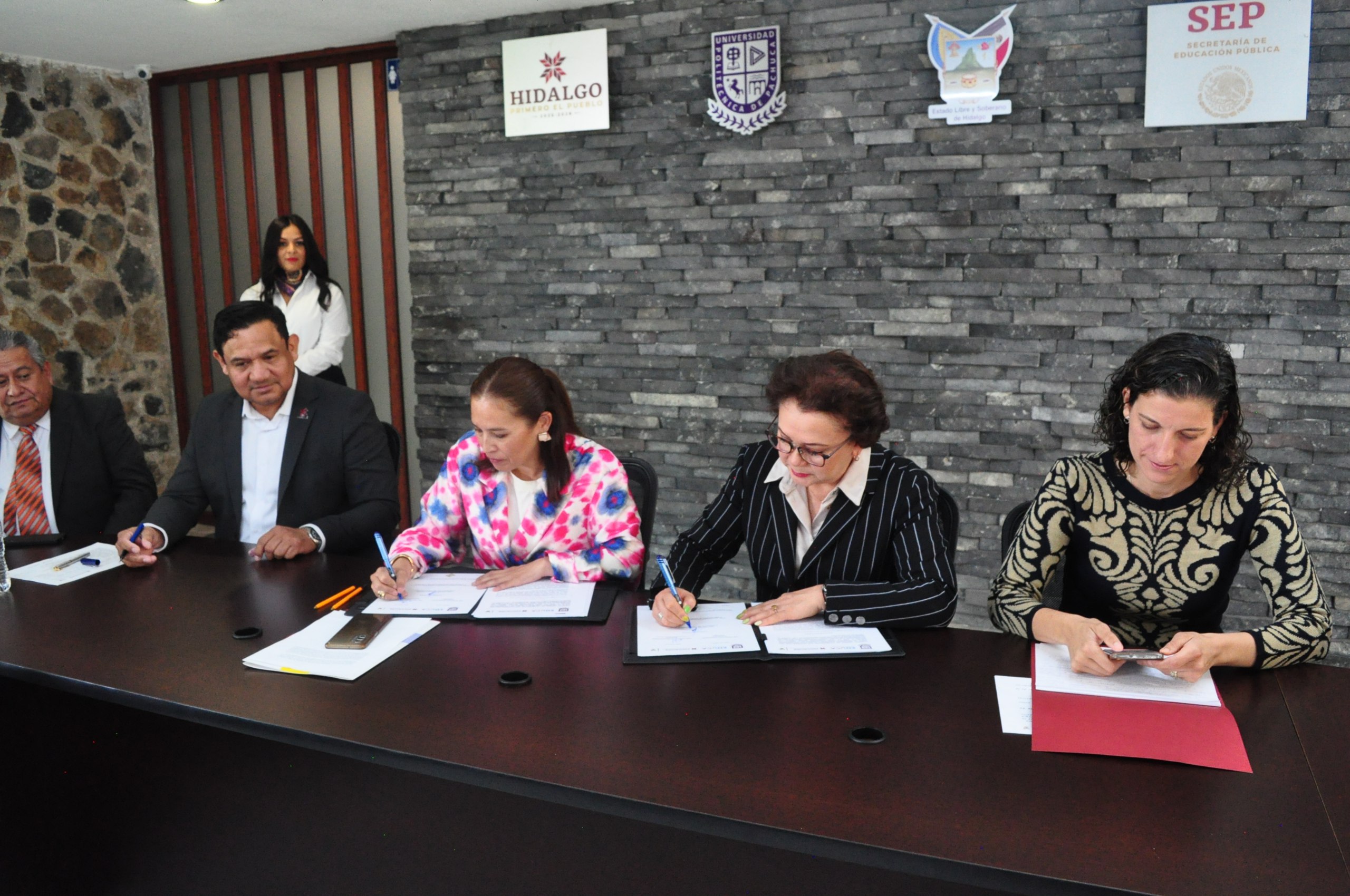 Atestiguaron esta firma: la titular de la Unidad de Promoción Voluntaria de la Secretaría de Educación Pública de Hidalgo, Virginia Hurtado Salinas; la subsecretaria de Administración y Finanzas, Maricarmen Mandujano Cerrilla, y Fernando Cuatepotzo Costeira, director de la Unidad Académica y de Vinculación.