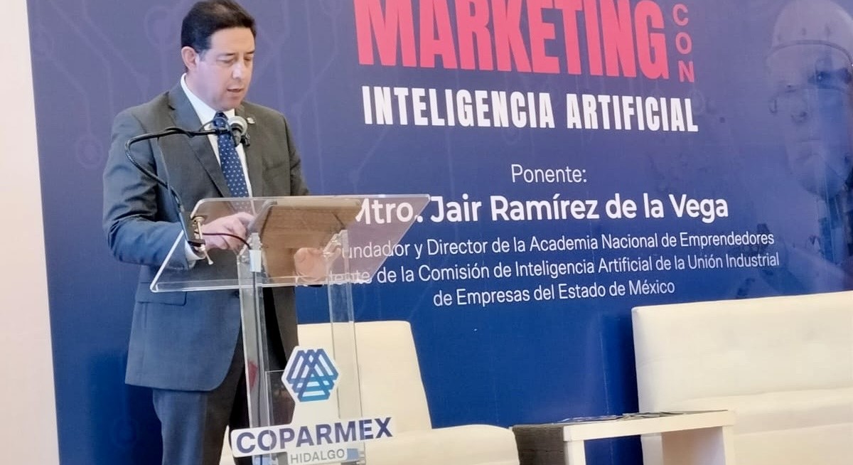 Consideró indispensable una capacitación constante, en este y en otros temas, para favorecer a la formación empresarial, razón por la cual se llevó a cabo la ponencia “Marketing con Inteligencia Artificial”, impartida por el Mtro. Jair Ramírez de la Vega, CEO Fundador y Director de la Academia Nacional de Emprendedores y Presidente de la Comisión de Inteligencia Artificial de la Unión Industrial de Empresas del Estado de México.