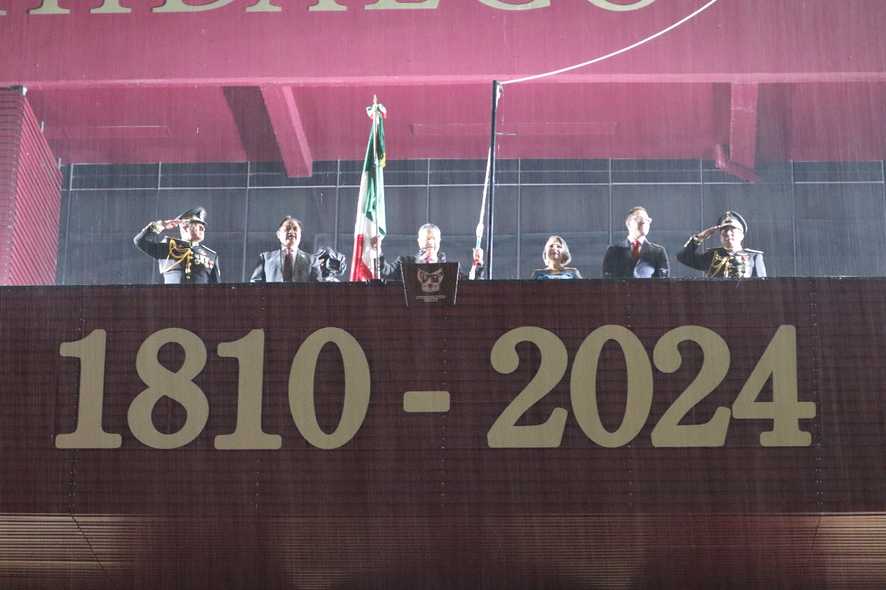 Ante una Plaza Juárez completamente abarrotada, el mandatario hidalguense entonó la tradicional arenga, destacando a figuras como Miguel Hidalgo, Josefa Ortiz, José María Morelos y Pavón, así como Ignacio Allende y Julián Villagrán .