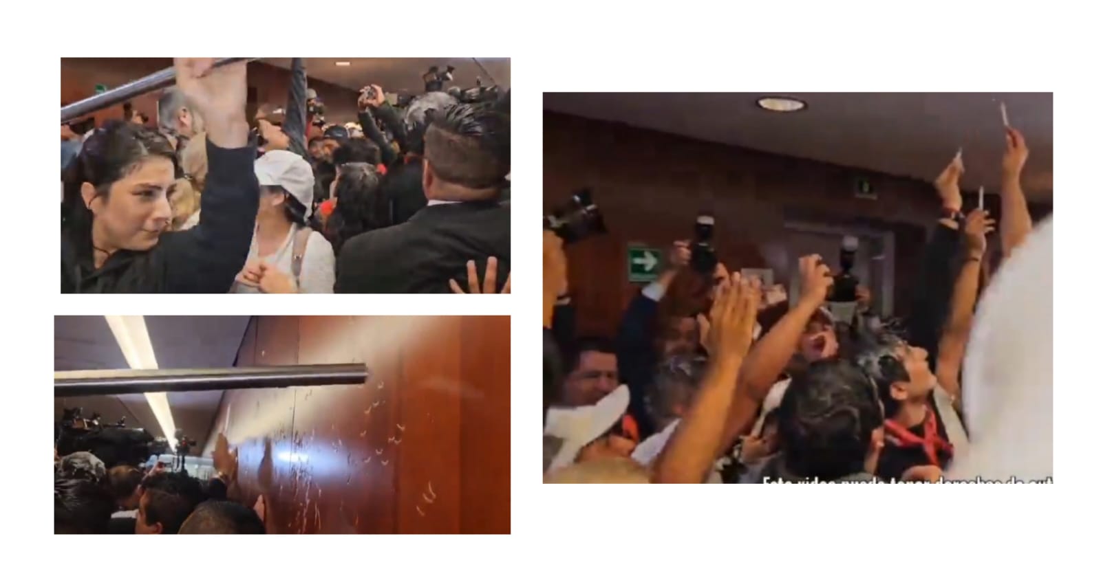 https://elnuevograficodehidalgo.com.mx/wp-content/uploads/2024/09/senadoo.mp4Fueron los propios “trabajadores” del Poder Judicial quienes dieron portazo a la entrada del Pleno del Senado dela Republica, mientras se discutía la reforma, su descontento lo manifiestan agrediendo, rompiendo puertas e intentando activar las alarmas contra el fuego para generar aun más caos al mismo tiempo que corean el himno nacional mexicano.