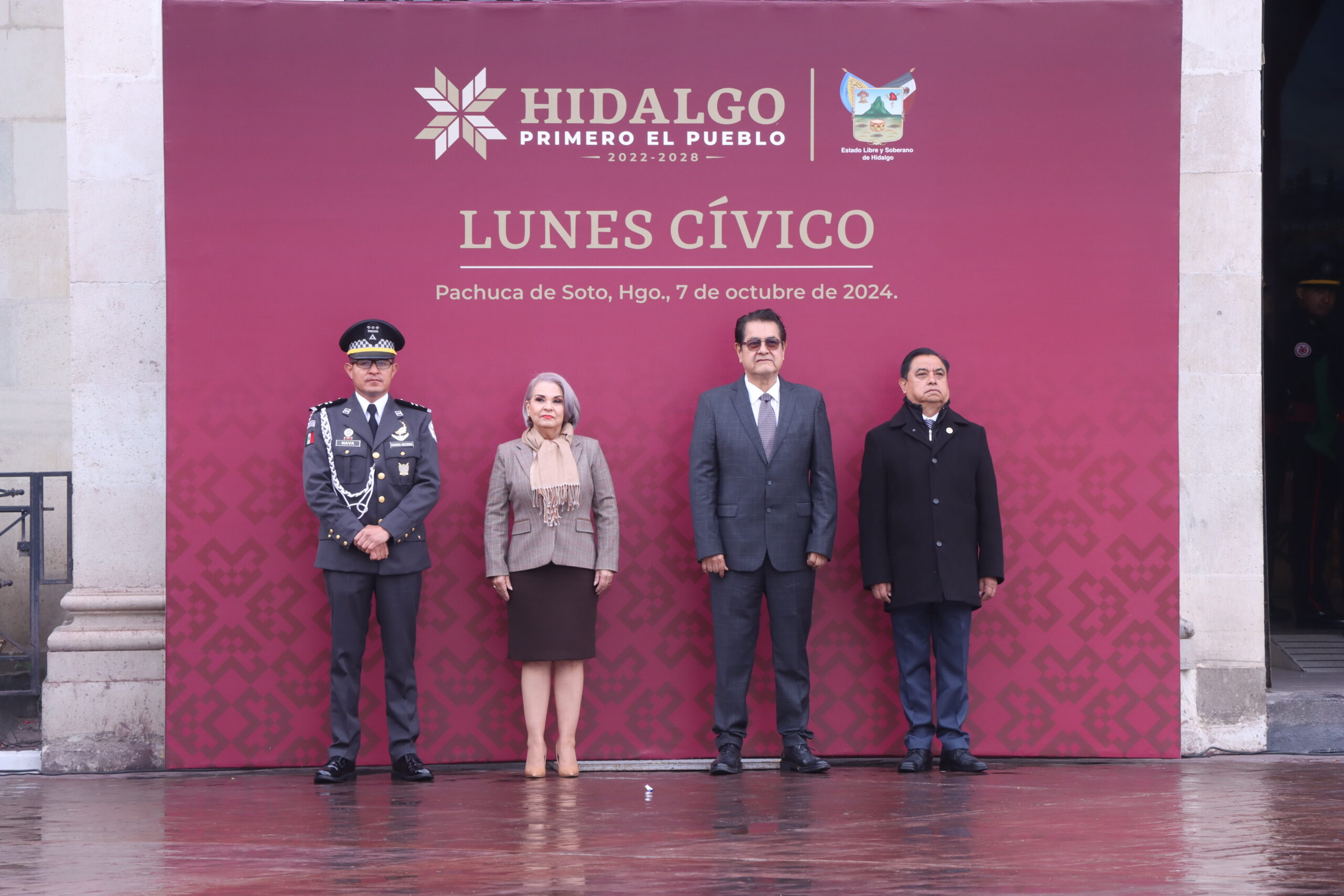 En el evento participaron la magistrada presidenta, Rebeca Stella Aladro Echeverría, el diputado presidente, Andrés Velázquez Vázquez, el representante de la Guardia Nacional, así como estudiantes de primaria de dos escuelas de la capital hidalguense.