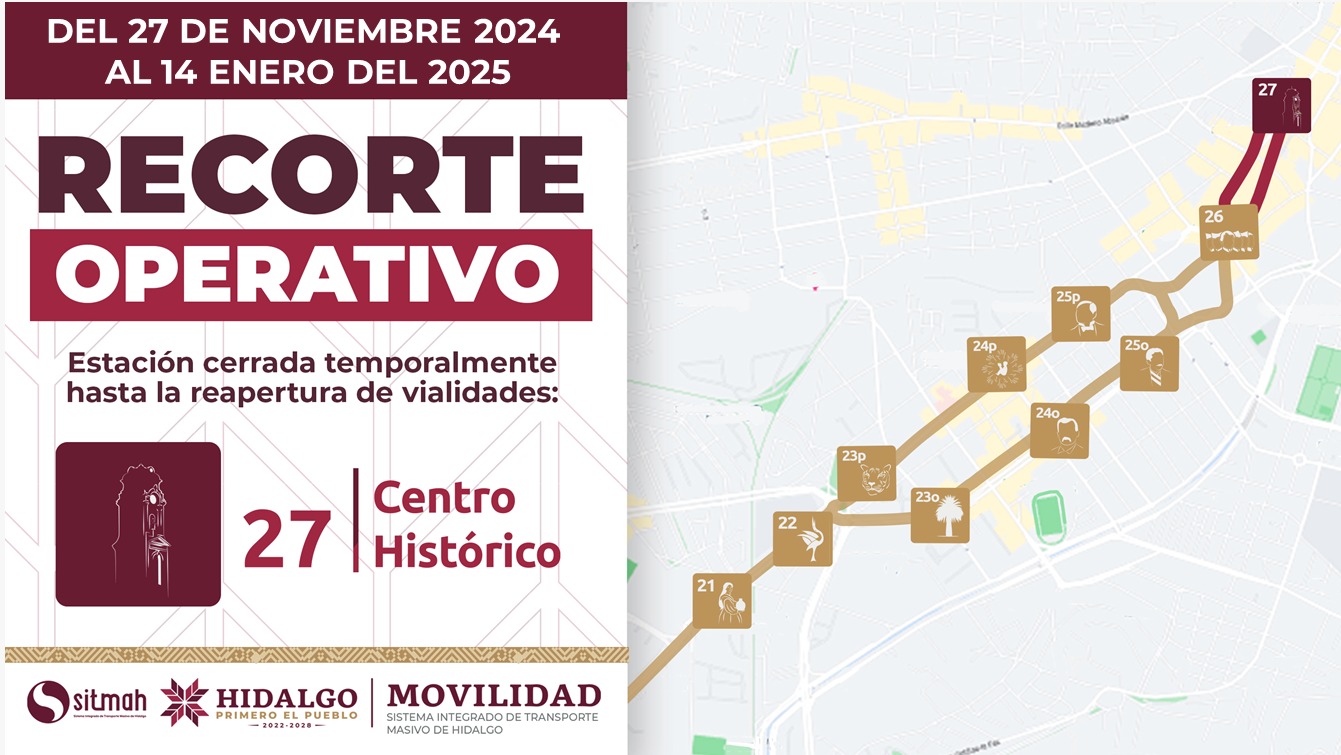 Durante este periodo, la estación Centro Histórico permanecerá cerrada debido a los preparativos y festividades decembrinas que se tiene contempladas en la capital hidalguense.