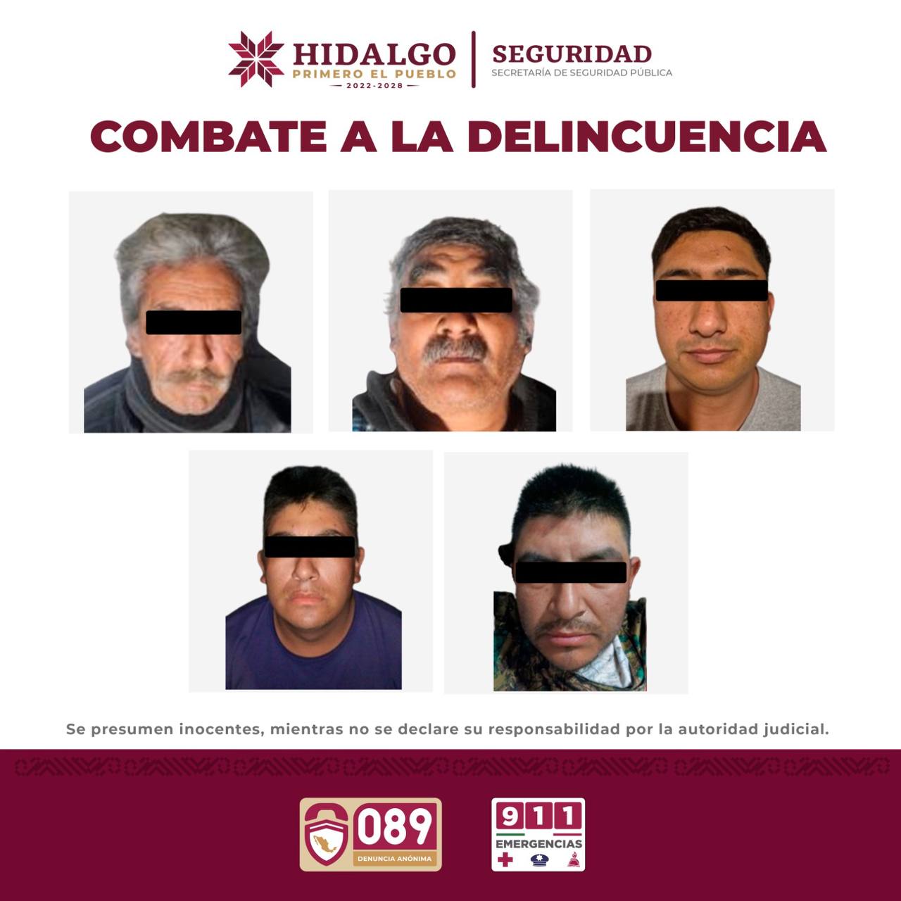 El desarrollo de las estrategias de Inteligencia Operativa planteadas en la Mesa de Coordinación para la Construcción de la Paz y la Seguridad son firmes y permanentes, por lo que se reitera el llamado a la ciudadanía para contribuir con estas acciones al realizar reportes a través del 911 de Emergencias y 089 de Denuncia Anónima.