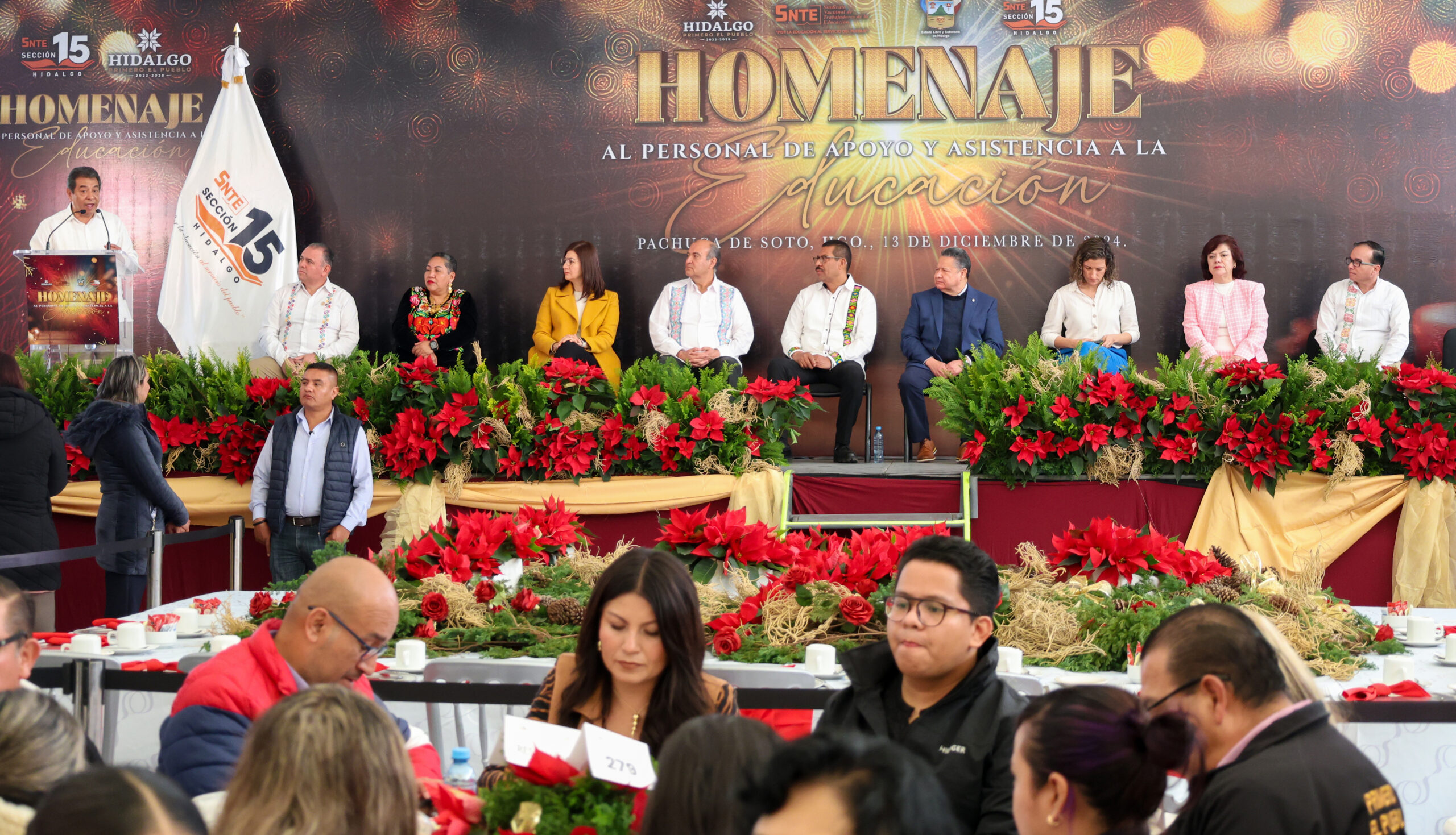 El gobernador Julio Menchaca Salazar asistió al homenaje que reunió a 6 mil 300 integrantes del Personal de Apoyo y Asistencia a la Educación (PAAE), pertenecientes a la Sección 15 del Sindicato Nacional de Trabajadores de la Educación (SNTE).
