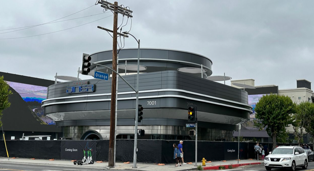 Enclavado en pleno Hollywood, junto a la ruta 66, el Tesla Diner es un restaurante de dos pisos con la cocina abierta las 24 horas del día los 7 días de la semana. Cuenta con dos enormes pantallas LED donde se reproducen películas y otros eventos especiales, destacando la de la azotea, a la que se accede por una escalera de caracol. Allí, un puesto de palomitas es manejado por un robot Optimus, que causó sensación en la inauguración.