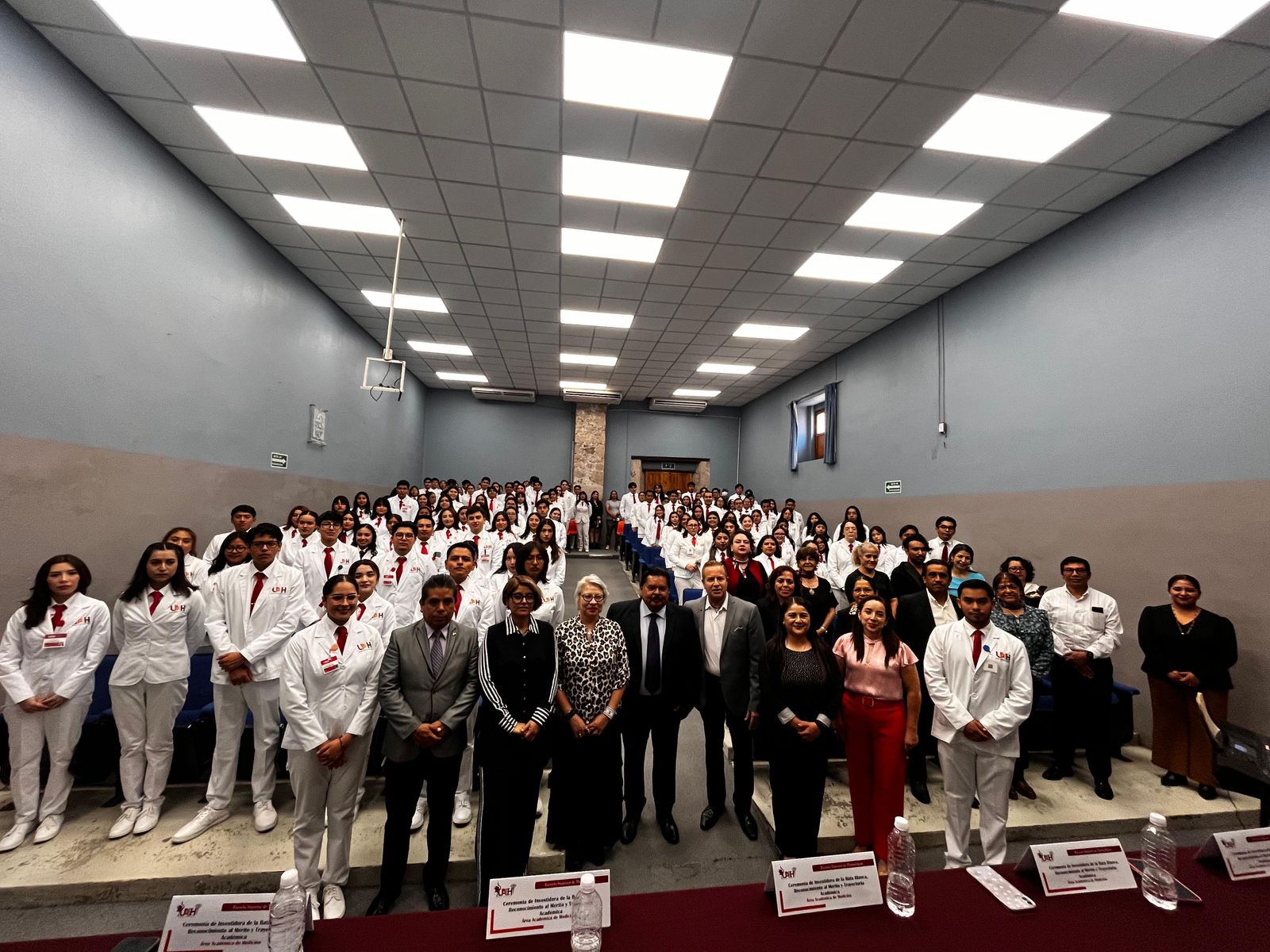 De igual manera, la comunidad académica celebró la tradicional Ceremonia de Investidura de Bata Blanca, dirigida al alumnado de primer semestre de la Licenciatura en Médico Cirujano, con el propósito de colocarles por primera vez esta prenda que simboliza sencillez, compromiso y emotividad, marcando así el inicio de su formación profesional y su vocación al servicio de la salud.