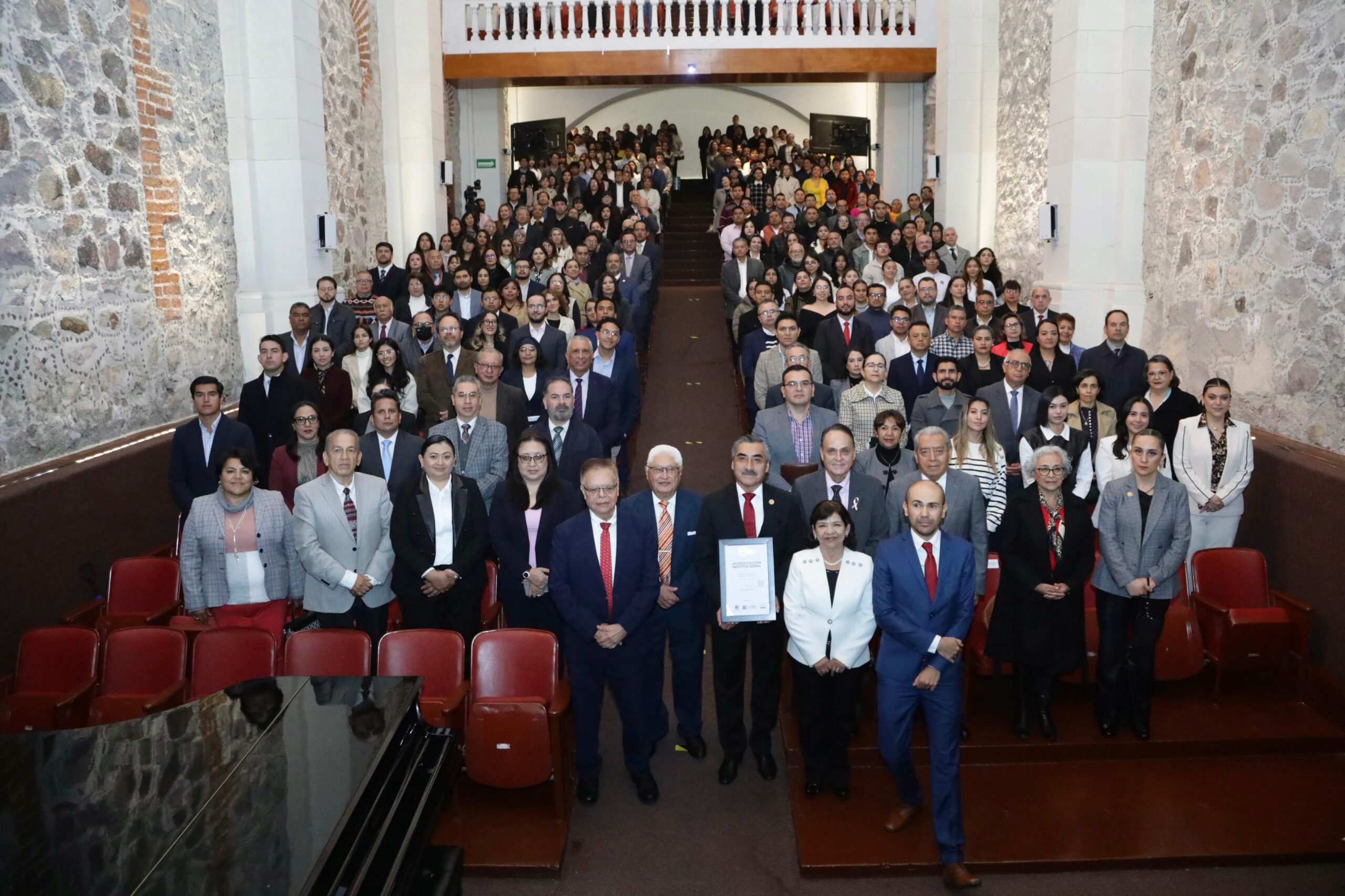 La UAEH afronta estos procesos con responsabilidad, convencida de que las observaciones y conclusiones de agentes externos constituyen un valioso aporte para el fortalecimiento institucional. La ceremonia contó con la presencia de Lidia García Anaya, presidenta del Patronato Universitario, Noé Chapa Gutiérrez, decano de esta casa de estudios, así como funcionarios Garza, docentes, estudiantes e integrantes del personal académico y administrativo.