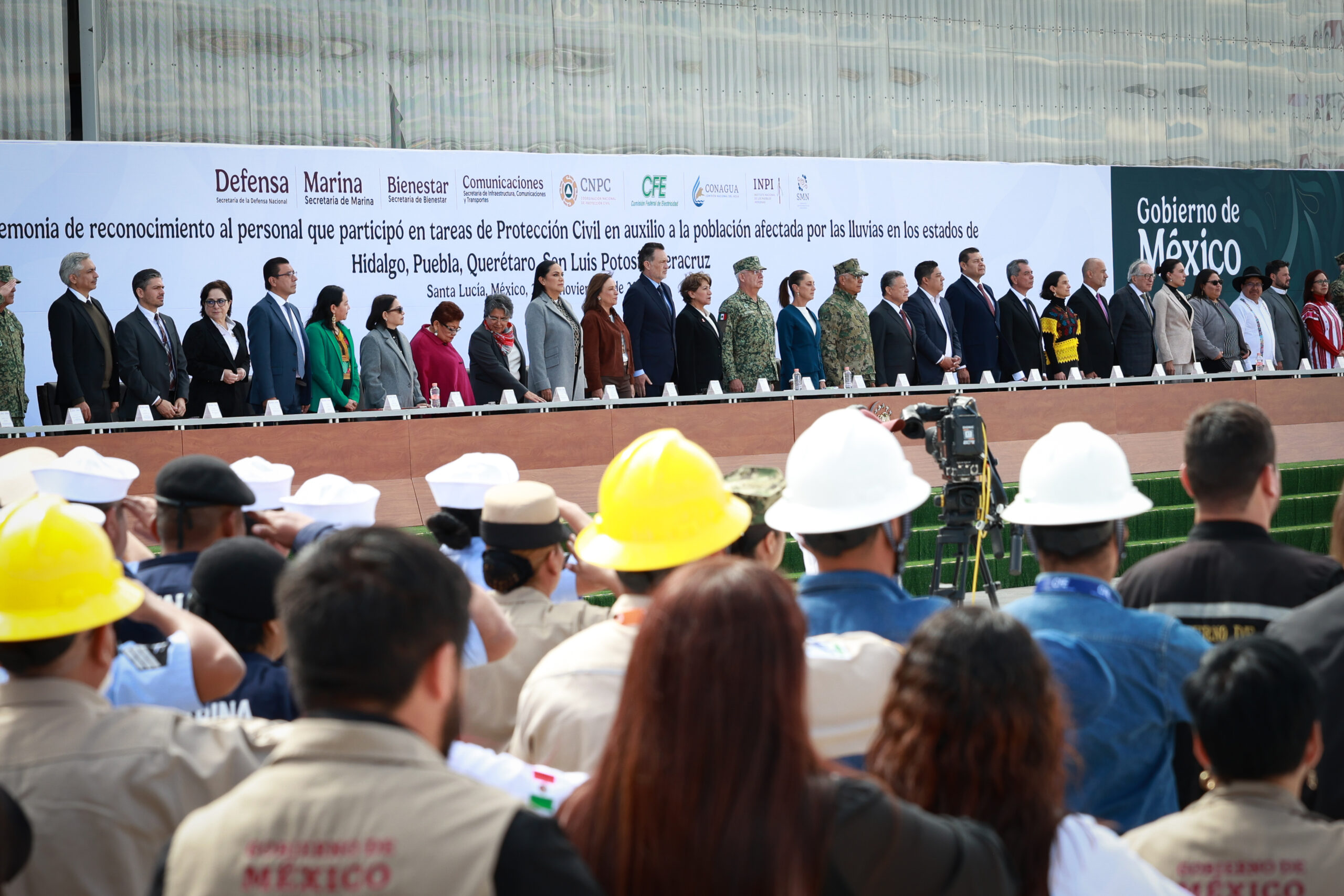 “Gracias por ser el rostro más noble de la patria”, expresó Sheinbaum Pardo al personal de la Secretaría de la Defensa Nacional, Guardia Nacional y Secretaría de Marina, así como a las funcionarias y funcionarios civiles que participaron en la atención de la emergencia.