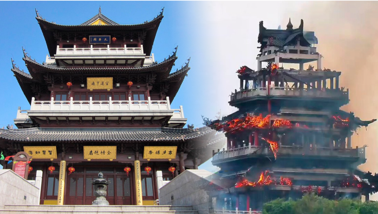 Un incendio de gran magnitud consumió parte del histórico templo Yongqing,